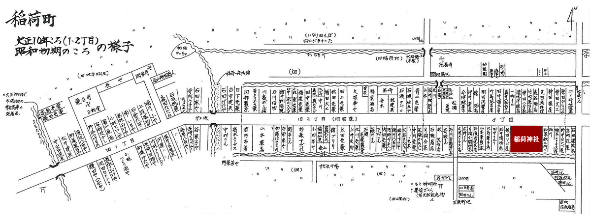 稲荷町は長い長い町である。七丁目まであった。今は統合されて、だいたい一・二丁目が一丁目、三・四丁目が二丁目、五・六丁目が三丁目になっている。七丁目だけは、都市計画区域外のせいか、そのままになっているようだ。